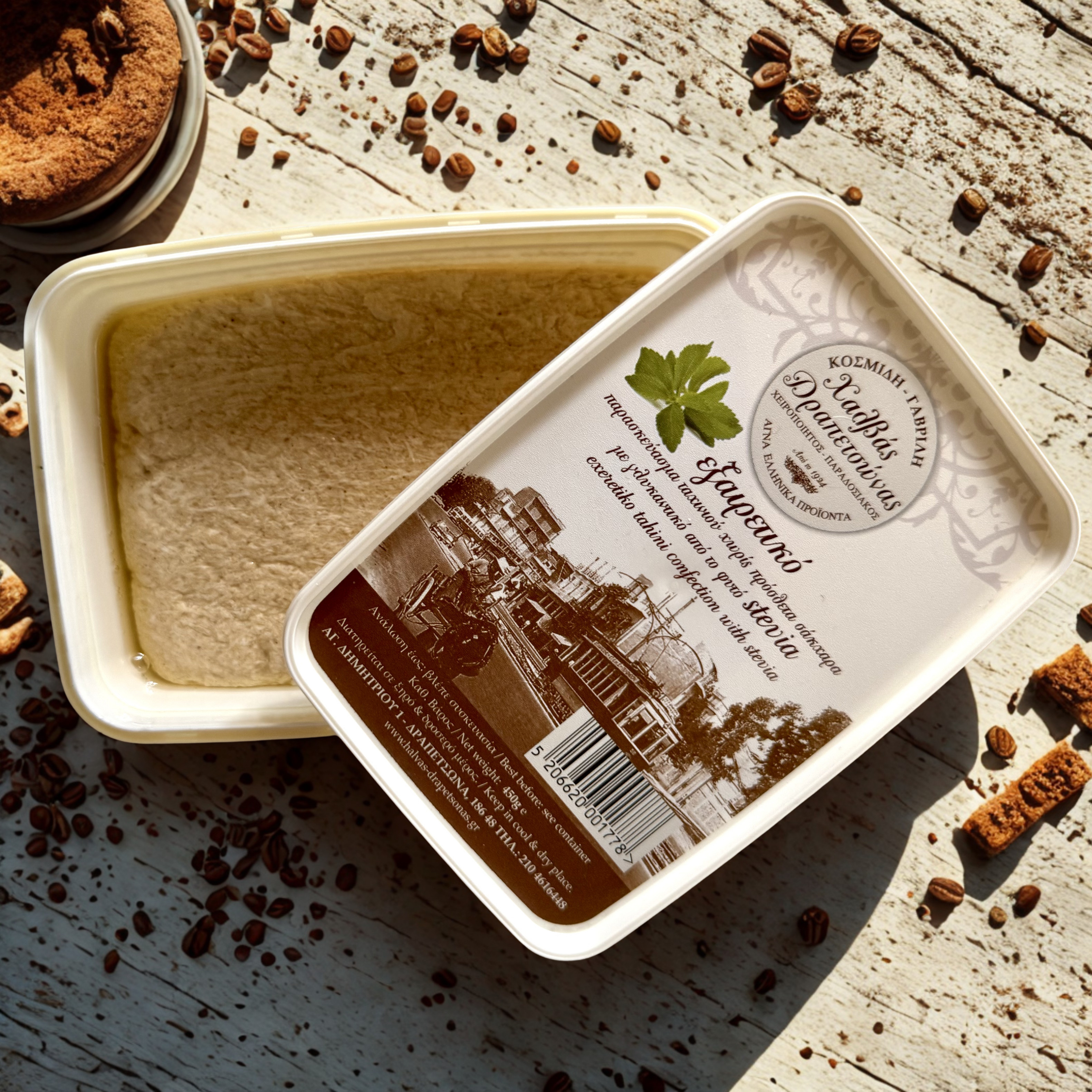 Poczuj prawdziwy smak Grecji zamknięty w ręcznie tworzonej chałwie o wyjątkowo delikatnym, klasycznym charakterze. Powstaje z najwyższej jakości nasion sezamu, dzięki czemu zachwyca idealnym połączeniem kruchości i subtelnej, jedwabistej konsystencji, która rozpływa się w ustach.